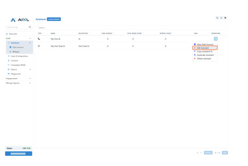 - Select Edit Assistant